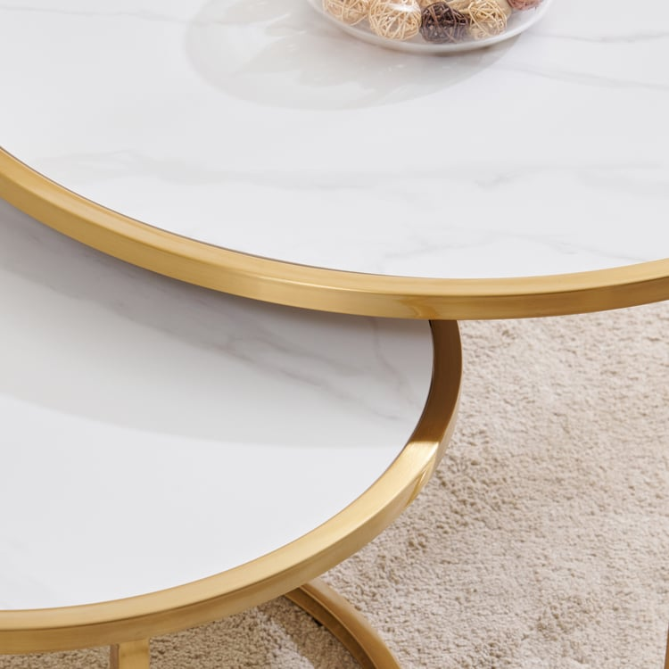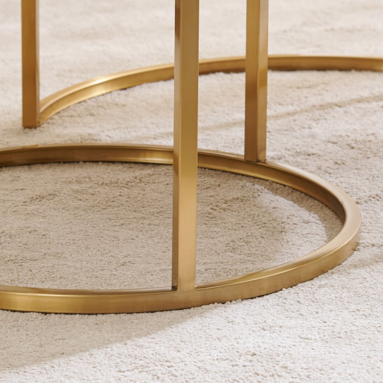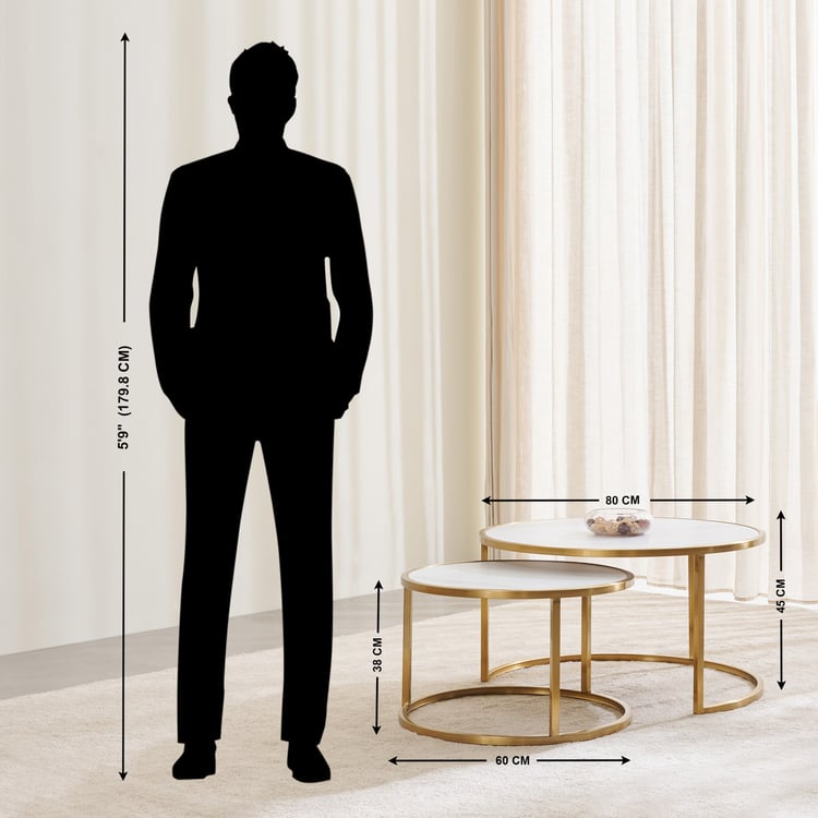 The gold stainless steel base ensures superior durability and adds a striking contrast to the crisp white marble. These nesting tables can be styled together for a layered look or used separately for added flexibility, making them ideal for both compact and spacious interiors.