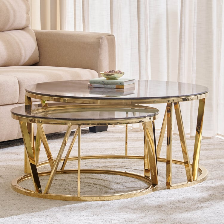 The tables are supported by a durable mild steel base, offering strong stability and a sleek, contemporary look. Thanks to the space-saving nesting design, you can tuck the smaller table underneath when not in use or separate it for added surface area while entertaining.