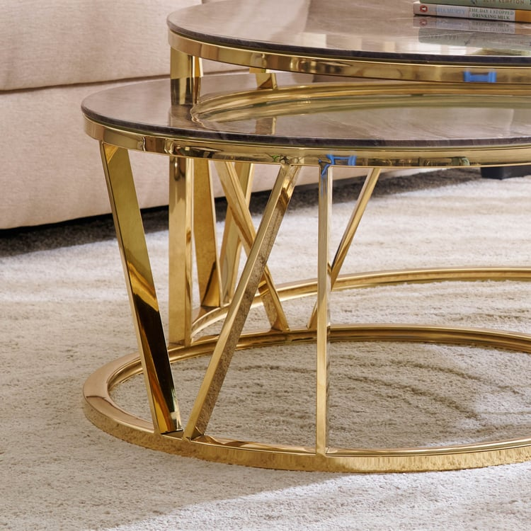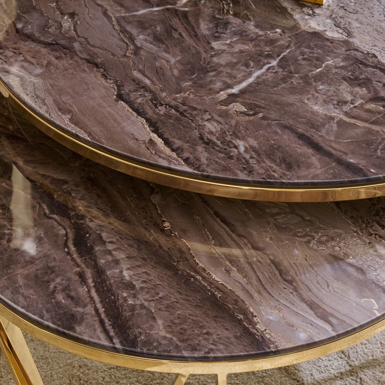 Bring warmth and sophistication to your living space with the Espon India Arata Nesting Coffee Table Set. Featuring a luxurious brown marble top, this pair of nesting tables blends natural beauty with everyday practicality. The rich tones of the marble add a touch of earthy elegance, making it a stylish focal point for any room.